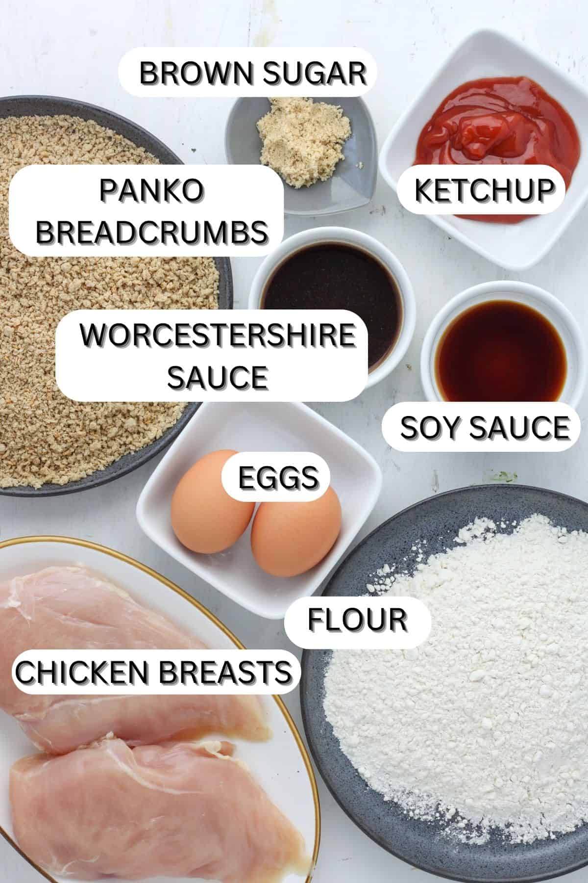 Air Fryer Chicken Katsu has only a few ingredients, and homemade tonkatsu is also mostly pantry staples: