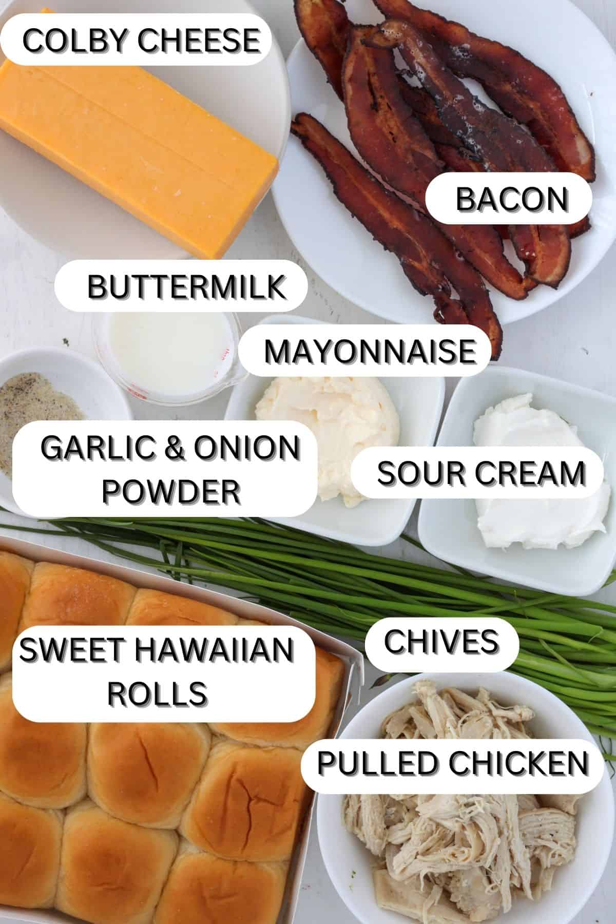 Toss remaining ranch dressing with pulled chicken and chopped crispy bacon. Add on top of the half of rolls spread with ranch dressing.